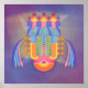 This intricate design depicts a stylised structure featuring towers and crosses, evoking a sense of spirituality and abstraction while blending harmonious colours that suggest depth and creativity.