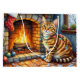 This delightful holiday illustration features a striking Bengal Cat sitting beside a warm fireplace, wrapped in glowing Christmas lights with festive stockings hanging above. The Bengal’s expressive eyes and distinctive coat pattern bring a touch of wild beauty to this cozy Christmas scene. Perfect for Bengal Cat lovers, holiday décor enthusiasts, and Zazzle shoppers seeking unique seasonal artwork celebrating their favorite feline breed.