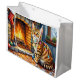 Bengal Cat Fireplace with Christmas Lights Large Gift Bag