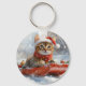 Bengal Cat in Sledge Let it Snow Christmas Key Ring