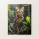This is a puzzle of a cat. Its imagery depicts a Bengal Cat outside in a natural setting surrounded by green foliage. This puzzle makes a great gift for individuals who love animals, cats, Bengal Cats, and nature. This puzzle's content is appropriate for individuals ages 6+. It is available in all sizes and may be adjusted by the customer.