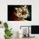 A Chinese Bengal Tiger with white electricity glowing coming out of his skin this tiger is orange and black stripes his teeth pointing at you and his eyes wide open