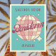 Benidorm España Spain Retro Vintage Design featuring a disco ball in pink, and apricot peach hues. This beautiful postcard is a perfect greeting card for Benidorm residents, visitors, tourists or fans.