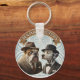 Description carry a little mystery wherever you go with Benjamin and buttons round keychain featuring the sharpest detective duo in town, historic bulldog and a classy dalmatian and vintage formal wear. This keychain sits against a stylish patterned blue background.