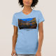 T-shirt featuring a stunning early fall morning twilight view of the 64 ALT Bridge in Bennett Spring State Park, Bennett Springs, Missouri, USA. There are still stars out. You can see the waterfall from the dam on the other side of the bridge with a hint of some fog on this fall season morning.