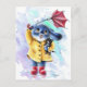 Benny Blue Bunny - Cat Rescue, rainy stormy weather, traditional whimsical illustration by Christine Karron