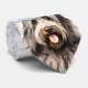 Woof art in soft faded grey on white sets off a very cool and cute Bergamasco in a festive red Santa hat for the dog lover's holiday celebrations.