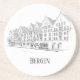 A beautiful Bergen Norway streetscape original line drawing graces this delightful, fun and functional sandstone coaster.