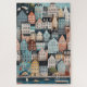 A beautifully illustrated puzzle capturing the charm of Bergen, Norway, featuring a picturesque hillside of colourful wooden houses in pastel tones. the intricate detailing of the traditional Nordic architecture is complemented by the bustling waterfront below, where small boats and sailboats gently float on the harbour. lush green hills and a whimsical sky with soaring birds add to the fairytale-like atmosphere of this Nordic gem. this artistic depiction perfectly reflects the cosy, vibrant, and historic essence of Bergen.