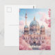 A beautifully illustrated postcard capturing the enchanting beauty of Berlin, Germany, featuring the majestic Berliner Dom bathed in soft pastel hues of sunrise. the iconic cathedral is surrounded by delicate cherry blossoms in full bloom, creating a dreamy and romantic atmosphere. in the background, the famous berlin tv tower (Fernsehturm) rises above the modern skyline, symbolising the city's blend of history and progress. the detailed architecture, soft lighting, and pink petals floating in the breeze add a magical touch to this breathtaking scene.