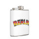 Well made flask, a little better than I had expected. Flask came in clear plastic box which gave it a nice presentation when I took it out of the zazzle packaging. Image is not printed on flask but on sticker. Don't know how this will hold up I haven't used it yet. This would make a Great gift! I plan to purchase more for friends! Cheers. I thought a little brighter than computer. Very crisp, writing wasn't