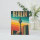 This bold vintage poster features Berlin’s iconic TV Tower (Fernsehturm) rising against a striking red and blue retro-style background. With clean geometric lines and mid-century design influences, the artwork blends urban modernism with nostalgic flair. A perfect tribute to Berlin’s post-war identity and timeless architectural landmarks — ideal for lovers of retro city posters and European travel art.