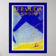 Vintage air travel poster promoting early propeller airplane flights to Bermuda.