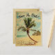 This neo vintage Bermuda Save The Date postcard boasts tons of charm with a cool retro mid-century style. Featuring a tropical palm tree on white sandy beach with a blue ocean and puffy clouds in a blue sky, your destination wedding will make everyone excited when they receive this vintage Bermuda Save The Date postcard.