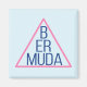 Shows "Bermuda" in modern blue text inside a pink Bermuda triangle. The legend and myth of the mysterious Devil's Triangle and Hurricane Alley lives on. Cool design.