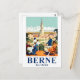Berne postcard. People at the terrace enjoy the view on the city and the church.