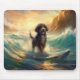 Bernedoodle Beach Surfing Painting Mouse Pad