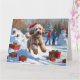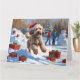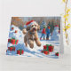 A heartwarming holiday illustration featuring a cheerful dog playing in the snow, wearing a Santa hat and surrounded by colourful gift boxes. In the background, children build a snowman beside a snow-covered Christmas tree, creating a joyful winter wonderland. Perfect for spreading holiday cheer and capturing the magic of Christmas.