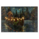 Set sail into the magic of the holiday season with this beautifully detailed illustration, showcasing a proud dog sitting in a festively decorated boat, gliding across a serene Christmas lake. The twinkling lights from nearby pine trees reflect off the water, casting a warm, festive glow that enhances the cosy ambiance. Ornaments dangle from the boat's sides, while glowing lanterns light the way, creating a scene that captures the true essence of Christmas warmth and joy. This nostalgic artwork brings a touch of holiday magic to any space, perfect for those who cherish the spirit of the season.