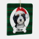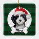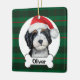 This Tricolor Bernedoodle dog with santa hat ornament is a great gift! The green plaid background matches all holiday decor. The doodle was hand painted by me and made available as this adorable ornament! Customize the text to personalize the gift. Visit my shop for lots of other variations of this artwork and other holiday backgrounds including red and green plaid and red buffalo check.