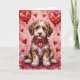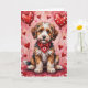 Bernedoodle Valentine Dog Sitting with Hearts Red Card