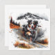 Fun illustrations of Bernese Mountain dog biking through the mountains. Perfect for pet lovers or dog parents.