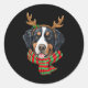Bernese Mountain Dog Christmas Reindeer Santa Hat Classic Round Sticker