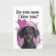 Customised Dachshund Valentine's Day card. Customisation options: change greeting, dog's name, font colour.