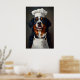 Bernese Mountain Dog In Chefs Hat Poster, Pet Poster, Bernese Mountain Dog In Apron Print, Funny Dog Wall Art, Portrait, Dog Kitchen Poster
