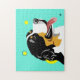 Contemporary Bernese Mountain dog art in flat colour on jigsaw puzzles with background colour that can be customised online.