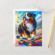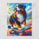 AI generated art of a Bernese Mountain Dog skateboarding on colourful bricks with mountains in the background