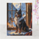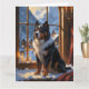 A heartwarming holiday scene featuring a dog sitting peacefully beside a window, surrounded by glowing Christmas lights. This cosy and festive design captures the spirit of the season, perfect for adding warmth and charm to any space. Ideal for dog lovers and holiday decor enthusiasts.