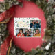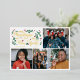 Traditional Christmas photo card with Merry Christmas and a happy New Year in gold foil lettering with four photos of your family and greenery and red berries.