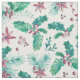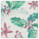 Trendy green pine twigs and leaves, pink holly berries on white background