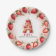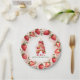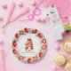 Celebrate in style with this adorable strawberry-themed round paper plate! The elegant border features a circular arrangement of hand-painted strawberries, with a mix of whole and sliced berries, delicate green leaves, and tiny white blossoms. At the centre, a beautifully illustrated letter "A" cake takes the spotlight, decorated with pink frosting, juicy strawberries, and a glowing birthday candle. The soft watercolor background blends seamless shades of blush and rosy pink, creating a festive and charming atmosphere. Perfect for strawberry-themed birthdays, fruit lovers, and summer celebrations. Pair with matching invitations and party decor for a coordinated look!
