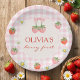 Berry 1st birthday strawberry paper plate for a sweet girl's celebration. Featuring blush pink gingham, watercolor strawberries, daisies, and a charming layout, this design is perfect for a berry sweet first birthday party. Need matching items? Please contact me for a coordinated party set.