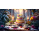 Vibrant colored letters, trees, holly and cancy canes in a cheerful message suitable for a non-religious holiday greeting. I especially liked it on the black background which made the design pop.