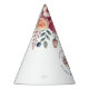 Celebrate in style with this adorable birthday party hats! Featuring a floral ice cream cone with a pink scoop and redberry on top. Perfect for your girl's birthday. Simple, sweet, cool, and fun!