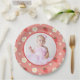 Berry First Birthday Photo Paper Plates. Featuring red strawberries with pink background. Perfect for your little girls 1st birthday celebration! Easily feature your birthday girl's photo in the editable frame! Coordinating invitations, signs, and decor also available.