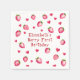 This cute "Berry First" red hearts and strawberries hand painted watercolor illustration themed birthday napkin with personalizable text is perfect for a 1st bday party. It features red hearts and hand-drawn strawberry motifs on a white background and text that you can customise with your own details. The template is customisable in the listing editor.