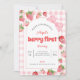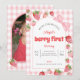 Berry First Birthday Pink Bow Gingham Photo Invitation