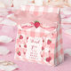 Wrapped in a classic red and white gingham print, strawberries and adorned with dainty watercolor bows, these favor boxes bring a sophisticated coquette-meets-picnic vibe to your party tables.