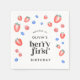 These adorable Berry First Birthday napkins with strawberry, raspberry and blueberry watercolor art will add an special touch to your party.
