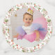Celebrate your child’s first milestone in a fun way with our "Berry First Birthday" custom photo confetti. Each piece of this exquisite confetti is a tiny work of art, featuring a delightful mix of round cuts adorned with vibrant images of red strawberries, raspberries, and hand-painted watercolor blush pink florals. Interspersed among these are personalised pieces showcasing your little one's photo, framed by the same lush verdant greenery and sophisticated dark red calligraphy that characterise the entire collection. Perfect for adding a splash of colour and personal charm to table settings or special invitations, this bespoke confetti will enhance the celebratory atmosphere, making your child’s first birthday decorations unforgettable and full of joyous, personalised flair.