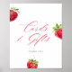 Berry in love bridal shower 'Cards & Gifts' sign with a minimalist watercolor strawberry design and elegant script.