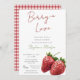 Designed in a romantic red and sage green color palette, this invitation includes a matching red gingham plaid print on the back for a rustic, cozy farmhouse touch. Whether you’re hosting a chic bridal tea, a brunch celebration, or a “Love Is Sweet,” “Berry In Love,” or “Berry Excited” themed event, this editable invitation makes it effortless to personalize your event details.