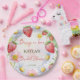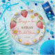 Berry in love strawberry bridal shower monogram printed paper plates template, summer garden strawberry berry themed bridal shower personalised table decor strawberries and daisies garden theme berry in love plates