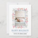 Berry and leaf border Happy Holidays Christmas non traditional photo Holiday Card. The front features a frame made of berries and leaves, the tex "Happy Holidays" in blue and your photo. The back is of solid blue colour.