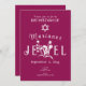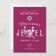 Wild berry pink bat mitzvah invitation with beautiful white typography has white flowers that you can move and resize with your lettering. Botanical artwork can be colour changed along with your lettering. Easily change the background colour on this simple and unique bat mitzvah invitation. This template is easily customised for any hot pink, plum, raspberry birthday party themes.