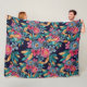 Berry Red Navy Mustard Watercolor Flowers Art Fleece Blanket